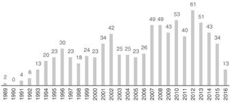 En la figura 1 puede verse el número total de artículos desde el nacimiento de la técnica en 1989 hasta la actualidad. Puede apreciarse el incremento gradual en el número de artículos hasta 1996. A partir de ese año, el número de publicaciones es más irregular. Desde 2007, el número de publicaciones aumenta, siendo el año 2012 el más productivo. En los últimos años la técnica sigue teniendo el interés de clínicos e investigadores.