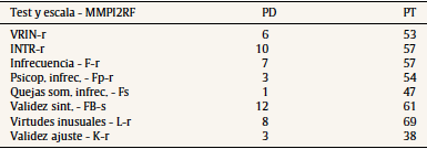 En todas las escalas referidas del MMPI-2-RF, las puntuaciones obtenidas se encuentran dentro de la media poblacional (ver tabla 2).