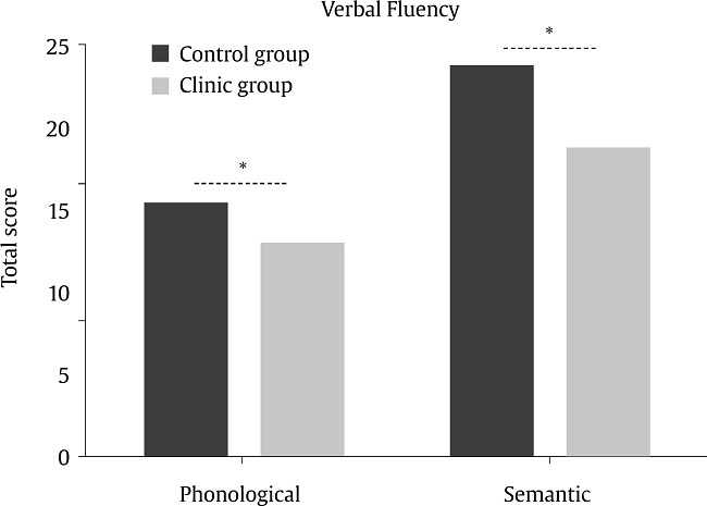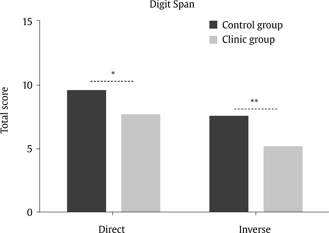 For the executive function (see Figures 5 and 6), direct (u = 58.000, p < .022) and inverse (u = 34.000, p < .001) digit-span test shows significant differences together with verbal fluency, in semantic (u = 52.500, p < .012) and phonologic (u = 63.500, p < .04) tasks.