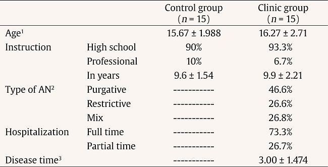 All participants were native Spanish speakers and were tested individually in a quiet room at the hospital. The sequence in which tests were administered were identical for all subjects. The demographic and clinical features of the sample are shown in Table 1.