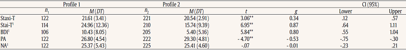Comparison of Means between the two Cognitive Emotion Regulation Profiles in Trait Anxiety, Trait Anger, Depressive Symptomatology, and Positive and Negative Affect