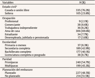 Participaron 442 mujeres embarazadas con una media de edad de 24 años (DE = 6). En promedio, se encontraban en la semana 26 de gestación y reportaron tener un nivel socioeconómico medio (Tabla 1).