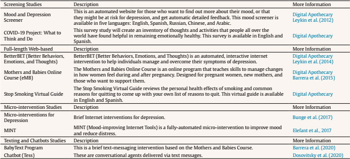 Keywords: DepressionDepression,PreventionPrevention,TreatmentTreatment,Digital interventionsDigital interventions,InternetInternet.