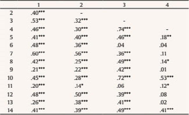 The model was assessed using several goodness of fit indices, including the χ2/Satorra-Bentler ratio, with values below 2 indicating a good fit (Brooke et al., 1988); the non-normed fit index (NNFI), for which values must be .90 or higher (Bentler & Bonnet, 1980), and the root mean squared error of approximation (RMSEA), with values lower than .08 indicating an acceptable fit (Browne & Cudeck, 1993). Moreover, the Langrange multiplier test was performed in order to verify the improvement of the fit of the model by establishing correlations between pairs of errors (Breusch & Pagan, 1980). The EQS 6.1 software package (Bentler, 2005) was used for the analyses. After the structure of the questionnaire had been obtained, the internal consistency (McDonald’s ω) of the resulting factors was analysed. McDonald’s (1999) omega was used to estimate internal consistency, since it is a better estimator of reliability than Cronbach’s alpha (Dunn et al., 2014). It was interpreted following the EFPA guidelines (Evers, et al., 2008), so values under .70 are insufficient, between .70 and .80 are sufficient; between .81 and .90 are good; and above .90 are excellent. Once the optimal model had been found, the convergent and discriminant validity of the Cib-VPA were analysed. To this end, a bivariate correlation matrix (Pearson’s r) between the Cib-VPA factors and the other measures used in the present study (CADRI and CPI) was calculated, analysing the association between the factors obtained and other offline and online dating violence measures.