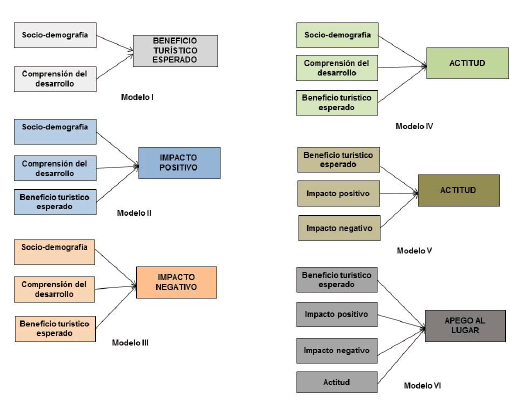 H1: Las características socio-demográficas de la población local, los beneficios turísticos esperados y las percepciones de impacto influyen en el punto de vista de la gente local sobre la necesidad del apego al lugar.