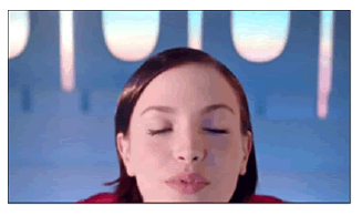 Simultáneamente, se oye primero el sonido simulado de una risa suave “ja ja ja...”, luego las voces del dúo electrónico cantando “I love you” (te amamos) que se extiende hasta el final de la próxima escena mientras en la imagen se muestra una joven oriental (Figura 13). Nuevamente se expresa la preocupación de la enunciadora por mostrar la diversidad de las razas que abarca la marca Air France.