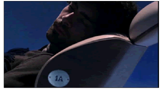 En esta secuencia fílmica se presenta un importante personaje: el pasajero acostado en la butaca “1A", de primera clase, igualmente apoyado en un columpio, dormido (soñando), con un libro abierto (Figura 6); mientras la figura de una joven de cabellos oscuros con flequillo, en otro columpio, pasa rápidamente, cierra el libro y lo cubre acogedoramente con la manta. Se escucha el final de la primera frase musical “Ooo...” en casi toda la escena. Ambas figuras visten ropas en tono gris para representar un ‘sueño’ mientras el escenario es cubierto por el color azul royal oscuro simulando la idea de dormir. Esta táctica de utilizar una imagen con fondo oscuro busca dar más visibilidad a los personajes y al confort de la butaca. Los sentidos de hospitalidad de la marca están expresados por el confort de la butaca y los gestos de la joven. Luego se abre la imagen en un plano general, pero en color azul claro, y la butaca del pasajero es vista sobre un columpio que lo lleva hacia la parte delantera de la cabina. Conforme pasa por las ventanas del avión éstas se abren y la luz del día penetra en el ambiente hasta que el personaje despierta del sueño. El joven se levanta y ve a dos chicas columpiándose. La primera con ropa blanca y la otra con ropa amarilla. Al mismo tiempo, se escucha la frase de la canción: - “we’re warm in the winter” (Somos cálidos en invierno).