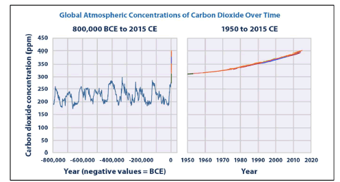 El cambio climático está comprendido por el Acuerdo-Marco de las Naciones Unidas sobre Cambio Climático (IPCC, 2013) como las alteraciones ocurridas en el sistema climático del planeta causadas por acciones antropogénicas y/o naturales. La dinámica natural de la tierra consiste en períodos de calentamiento y enfriamiento, definidos como variabilidad climática provocada por causas naturales (IPCC, 2013). En tanto que las mediciones físicas y las reconstituciones paleoclimatológicas revelan que en los últimos 800 mil años la concentración del dióxido de carbono (CO2) en la atmósfera, principal gas de efecto invernadero, no supera las 300 partes por millón (ppm). Actualmente, conforme el Gráfico 1, esa concentración extrapola 400 ppm, siendo el período de máxima concentración y extrapolación a partir de 1950 (IPCC, 2013; EPA, 2016).