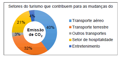 Importa resaltar que la relación entre turismo y cambio climático se presenta por dos vías, ya que por tener un comportamiento de sistema abierto, el sistema climático afecta y también es afectado por el turismo. La organizaciones UNWTO & UNEP (2008) estiman que el turismo contribuye con cerca del 5% de las emisiones globales de CO2, destacándose el sector de transporte que participa con un 75% de esas emisiones. El sector aéreo responde por el 40% de las mismas, seguido del terrestre (32%) y de los demás medios de locomoción (trenes y barcos) con un 3%. Al sector de la hospitalidad se le atribuye el 21% de las emisiones del turismo. Otras actividades de entretenimiento como la visita a museos, parques temáticos, eventos o las compras generan cerca del 4% (Gráfico 2). Es verdad que el turismo bien gestionado contribuye a mitigar la emisión de gases de efecto invernadero (GEE) al generar un impacto económico que permite conservar la biodiversidad, que presta servicios ecosistémicos al turismo como la apreciación del paisaje, la biodiversidad y la estética o la espiritualidad, además de permitir la valoración cultural de los pueblos tradicionales (PBMC, 2017).