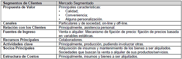 En relación al rubro de alquiler de vehículos, la plataforma prioriza la personalización en sus propuestas de valor, considerando que los autos pueden ser elegidos de acuerdo con todas sus características, conveniencia, menores precios, reducción de riesgos por medio del seguro y un ingreso extra o la disminución de los costos de mantenimiento del propietario. Dichos elementos constitutivos de la propuesta de valor reflejan aspectos conocidos de la Economía Colaborativa: flexibilidad, conveniencia (Puschmann & Alt, 2016) y disponibilidad de una nueva fuente de ingresos a través del aumento de la eficiencia de los activos (Leismann et al., 2013; Teubner et al., 2014). Por otro lado, la empresa tradicional ofrece una personalización más limitada en relación a las características de los vehículos, pero presenta la conveniencia de poseer autos adecuados a diferentes necesidades disponibles en todo momento, sin espera, con la garantía de ser vehículos nuevos (Osterwalder & Pigneur, 2011).