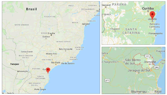 Frente a la relevancia del tema, el objetivo de este estudio es analizar cómo la capacidad relacional puede generar oportunidades de negocios para los agentes involucrados en el sector del turismo de la Ciudad de Joinville (Santa Catarina), para la realización del Festival de Danza. El Evento del Festival de Danza de Joinville fue seleccionado como objeto de investigación por ser considerado el mayor Evento de Danza del mundo. En 2017, de acuerdo con el Instituto Festival de Danza (IFD), el evento contó con más de siete mil ochocientos participantes entre bailarines, estudiantes, profesores, profesionales y artistas invitados. En lo que se refiere al movimiento de personas durante el Festival, en 2017 el público estimado fue de doscientas treinta mil personas (IFD, 2017). Además de estos factores, cabe agregar que el evento acontece en el Estado de Santa Catarina, que ganó once de las diecisiete ediciones del Premio “Mejor Estado para viajar en Brasil”, promovido por la Revista Viagem & Turismo, de la Editorial Abril. En la Figura 1 se destaca la ciudad de Joinville.