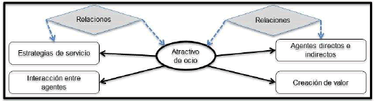 De esta forma, los atractivos de ocio contribuyen, a partir de estrategias de servicios, al desarrollo de los agentes participantes y representan un impacto directo en sus recursos y capacidades, lo que refuerza su relevancia en la identificación de la red relacional