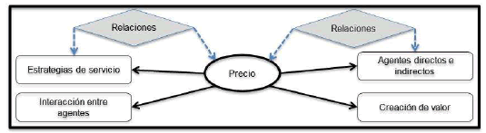 De este modo, la Figura 5 presenta la relación del precio con las estrategias de servicios, de acuerdo con lo propuesto por Douglas & Craid (2010), y con los agentes directos e indirectos de la red relacional informal del Festival. El vínculo del precio con la interacción entre los agentes puede representar una relación de competencia, conforme a los relatos de los entrevistados. También se identificó una relación de cooperación entre los agentes participantes, a través de beneficios agregados, es decir, los convenios. Esto justificaría que la creación de valor compartido no tenga relación con el precio. Significativa es la política adoptada por parte de algunos agentes en relación al cliente habitual, no practicando la rebaja de precios. Incluso registrándose aumentos en virtud del evento, los valores del cliente habitual son mantenidos.