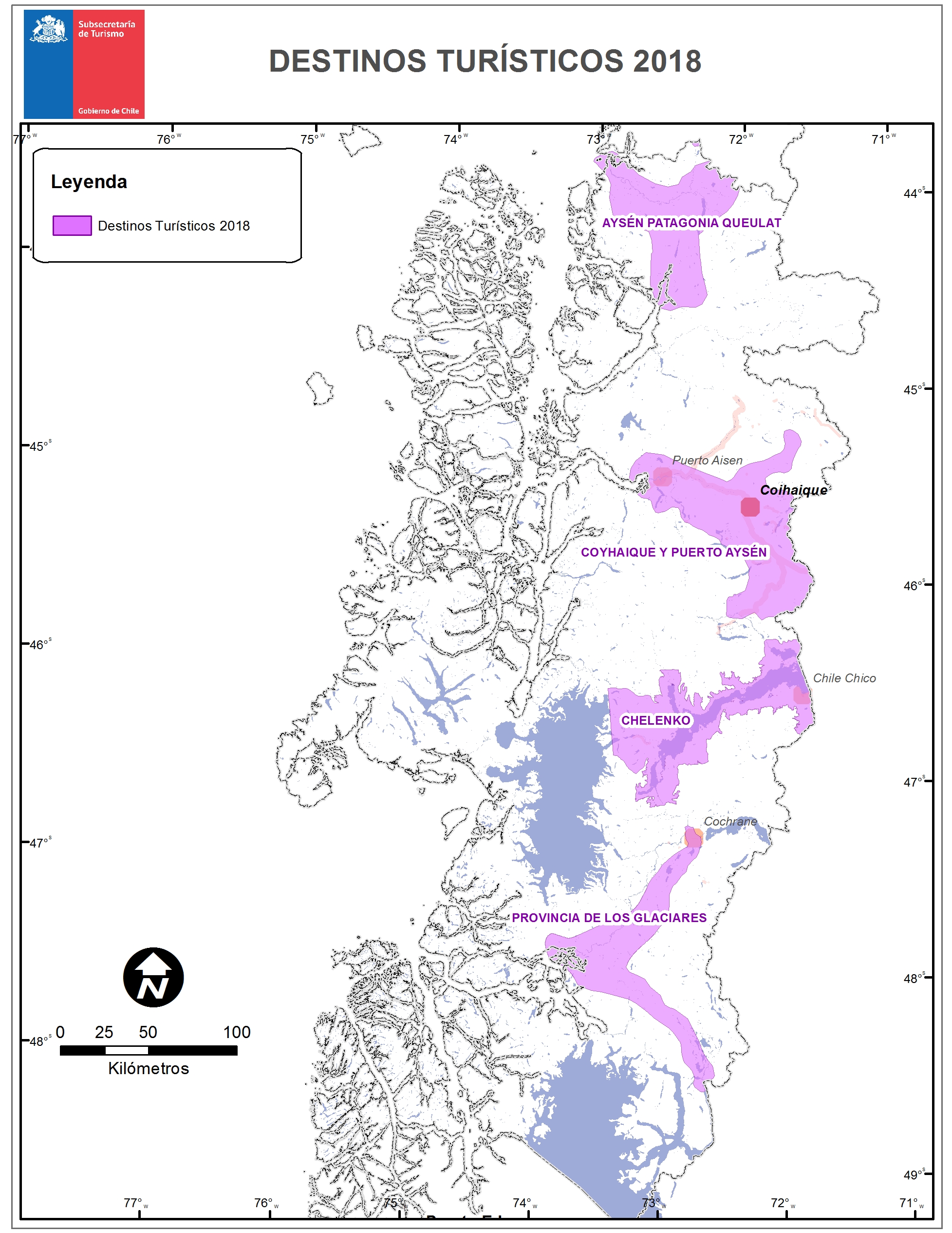 Subsecretaría de Turismo (2019) “Mapa de destinos turísticos Región de Aysén”. Disponible en http://www.subturismo.gob.cl/wp-content/uploads/2015/10/11_Ays%C3%A9n.jpg Acceso el 18 de enero de 2019