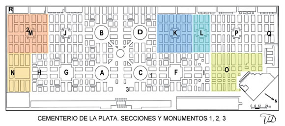 Plano del Área de Panteones del Cementerio Municipal de La Plata.