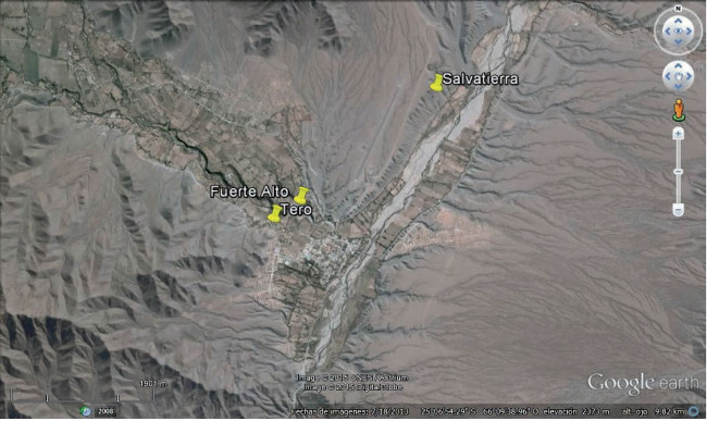 Ubicación de los sitios: Salvatierra (Período Formativo), Fuerte Alto y Tero (PDR).