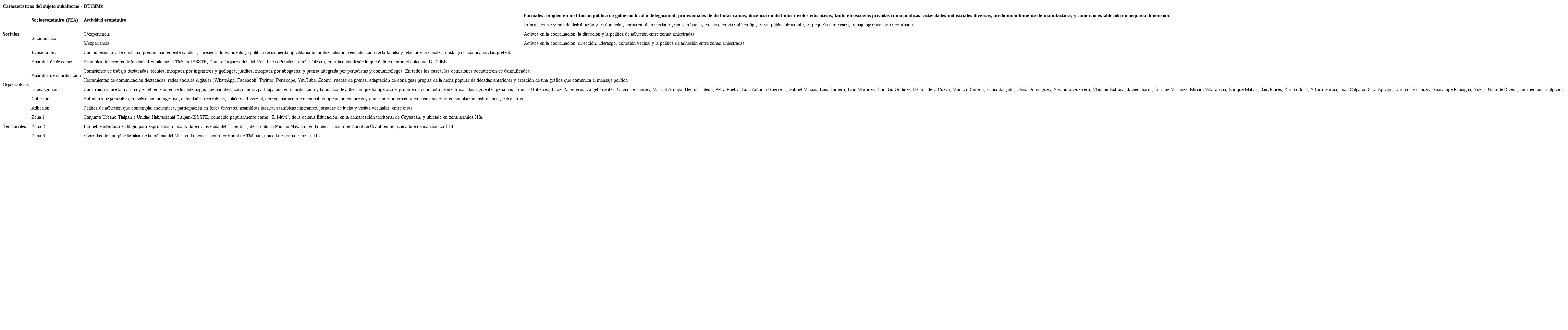 En su propia narrativa, DUCdMx es un grupo o colectivo emergente en el que convergen personas y familias de por lo menos 800 predios con inmuebles dañados con el sismo. Por predio entienden al lugar en el que fueron construidos tanto edificios multifamiliares o condominios como viviendas de tipo unifamiliar, en las que se da el caso de haber sido habitadas por familias extensas, de manera tal que la cantidad de predios se multiplica por el número de personas que habitaban dichos inmuebles.