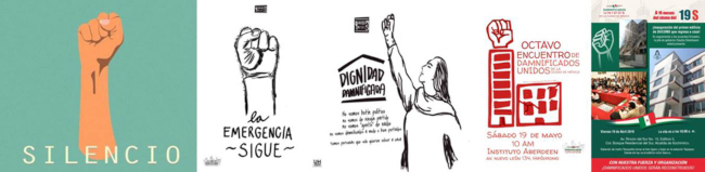 En conjunto, corresponde a la narrativa de la contienda y en la que ellos aprovechan para agradecer la solidaridad recibida, se difunde la organización alcanzada, se expone su versión de los hechos, pero también señalan su crítica frente al Programa para la Reconstrucción, al cual consideran discriminatorio, sometido al interés de las empresas constructoras y al capital inmobiliario y, por lo tanto, injusto. De esta narrativa presento las siguientes imágenes.