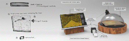 Otro modo de trazar relaciones y especulaciones aparece en la obra Degenerative cultures, de Cesar & Lois.12 En este proyecto cofabulan entes bióticos con una inteligencia artificial: microorganismos fúngicos crecen y se alimentan de libros que documentan la vocación humana por manipular la naturaleza, en un proceso de cooperación con una inteligencia artificial que recopila textos similares de la web y los degrada a partir de los patrones de crecimiento de los microorganismos. La obra cuestiona el paradigma científico hegemónico, generando relaciones de cooperación entre agentes humanos y no humanos, así como interacciones entre espacios heterogéneos (físicos y virtuales) (Figura 9).