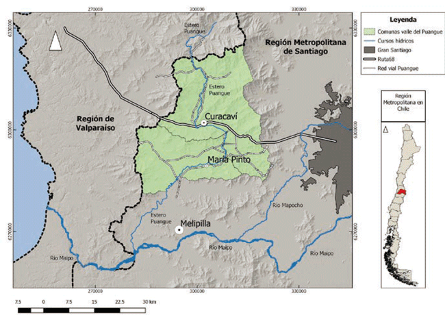 Comprende a la comuna de Curacaví en su sección norte y a la de María Pinto en el sur, ambas, parte de la provincia de Melipilla. El único centro urbano del territorio es la ciudad de Curacaví, ya que el poblado de María Pinto, siendo la capital de esa comuna, no se corresponde en cantidad de habitantes con una clasificación urbana.