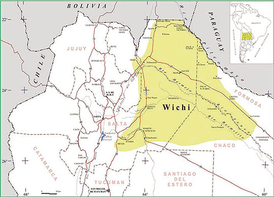 Los wichí son un pueblo indígena que se ubica en la región del Gran Chaco.3 En Argentina, los asentamientos wichí se sitúan en la franja de territorio que se extiende desde el río Pilcomayo hasta el río Bermejo (Chaco central), en las provincias de Salta (norte y centro del Chaco salteño), Formosa (oeste) y Chaco (noroeste). Una cantidad menor de comunidades wichí se asienta en Bolivia, en donde se autodenominan pueblo weenhayek. La imagen número 1 muestra la ubicación de las comunidades wichí en el territorio argentino.
