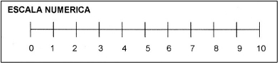 En el caso de Cristóbal, el dolor se localizaba en el pie amputado, y fue en la figura humana graficada donde se coloreó el pie izquierdo como "lugar" del dolor. Cuando el dolor es total, se colorea toda la figura (como el caso de Pedrito, cuando ingresó al hospital). También se registra y mide el dolor sobre la base de una escala numérica y de una de expresiones faciales. En la numérica, el "0" representa la ausencia del dolor, y "10", el mayor dolor. La facial va del 0 al 5 y registra la expresión relajada, tensa (parcial o totalmente) o si realiza muecas del dolor y tiene el ceño fruncido (Figura 2). La facial se registra con base en la observación. La numérica, por lo general, surge de una pregunta. Las/os médicas/os solicitan a la niña/o, que coloque un número del 1 al 10 al dolor que siente (Figura 3). Con un círculo se marca el número referido por la/el niña/o y queda asentado así en la historia clínica de cuidados paliativos pediátricos.