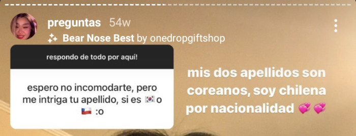 El perfil de @suamcy no menciona nacionalidad ni etnia. Sin embargo, es claramente racializada por sus seguidores. Recibe preguntas como “Espero no incomodarte, pero me intriga tu apellido, si es (bandera coreana) o (bandera chilena)” (Figura 1). Su respuesta: “mis dos apellidos son coreanos, soy chilena por nacionalidad”. Sus posts suelen atraer comentarios sobre su belleza, y otros como “¿te gusta el K-pop?”. La publicación que recibió más comentarios (más de 200) incluía lo siguiente: “eres el sueño que todo chileno quisiera”, “chinita preciosa”, “chilena hermosa”, “¿eso es en Corea o en Chile?”, y “chilena coreana lol, esto debería estar en un museo”. Es decir, muchos de sus seguidores (desde Chile) reconocen su identidad chilena, mientras otros también la identifican y racializan directa (“chinita preciosa”) o indirectamente (¿te gusta el Kpop?, ¿estás en Corea?). El único comentario que explícitamente se refiere a ella como “chilena coreana” también sugería que era excepcional o única y que debería estar en “un museo”. Este comentario se destaca de los demás por identificar a Sua como “chileno-coreana”, y por el hecho de que iba seguido de un “lol”, que sugiere incredulidad. Las preguntas que constantemente le plantea su audiencia sobre ser chilena-coreana plantea que, por el mero hecho de ser y articular su identidad cultural y nacional, se desafían las ideas arraigadas y dominantes sobre lo que “significa” o parece ser “coreana”, “china” o “chilena”.