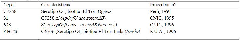 Desde 1992, en Cuba se han venido realizando grandes esfuerzos para el desarrollo de una vacuna eficaz contra el cólera. Como resultado de este proyecto investigadores del Centro Nacional de Investigaciones Científicas han evaluado diferentes cepas candidatas vacunales vivas atenuadas para inmunización oral. (16) La cepa atenuada V. cholerae 638 (VC638) es el ingrediente activo del candidato vacunal CV638. (17) Esta cepa procede de una segunda generación de cepas modificadas genéticamente mediante el empleo de vectores suicidas y técnicas de intercambio alélico. (18) A partir de la supresión del profago CTXφ, portador de los genes de la toxina del cólera (ctxAB), en la cepa virulenta C7258 V. cholerae O1 El Tor Ogawa, se produjo la cepa no toxigénica de V. cholerae 81. En una etapa posterior, en dicha cepa, se remplazó el gen hapA, que codifica la principal proteasa soluble de V. cholerae, por un alelo inactivado mediante la inserción del gen de la endoglucanasa A (celA) de Clostridium thermocellum. (19) Este gen heterólogo es un marcador adecuado para el desarrollo de vacunas vivas contra el cólera, ya que su presencia origina cepas que no expresan la hemaglutinina proteasa y poseen la actividad endoglucanasa, la cual permite distinguir a V. cholerae 638 de otros vibriones por la aparición de un halo de degradación en placas indicadoras de carboximetilcelulosa teñidas con rojo congo. La distinción fácil e inequívoca de la bacteria marcada facilita los estudios de campo. (20, 21)