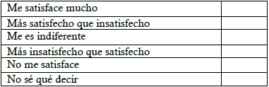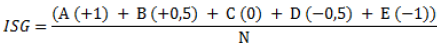 Para determinar la significación del estado de la satisfacción grupal se empleó la escala que se muestra a continuación: (+1) Máximo de satisfacción; (+0,5) Más satisfecho que insatisfecho; (0) No definido y contradictorio; (-0,5) Más insatisfecho que satisfecho; y (-1) Máxima insatisfacción. Para el cálculo del Índice de Satisfacción Grupal se empleó la siguiente expresión.