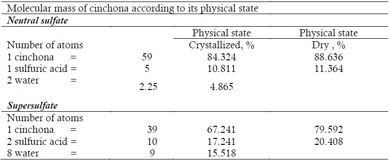 The above tables showed that the amount of acid contained in the supersulfate of cinchona and quinine was twice that of their neutral salts.