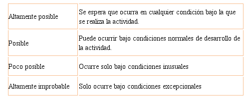 Para el análisis de los riesgos se empleó la siguiente estructura y parámetros (tablas 2, 3 y 4).