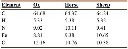 The variety of hemoglobin present in the different animal species led Cazeneuve and Breteau to look into the possibility that there was a similar variation in the composition of their hematin (Cazeneuve and Breteau, 1899a). Analysis of the hematin of ox, horse, and sheep, produced the following results: