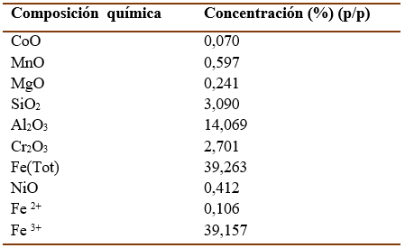 El escombro laterítico que se utilizó en este estudio, proviene de la zona de explotación minera Camarioca norte Zona 12 (E-Zona 12) en la región de Moa, Holguín, Cuba. La composición química del escombro se presenta en la tabla 1.