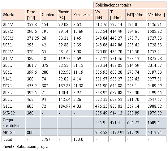 Como resultado del proceso de simulación, con respecto al MS-32 o camión de diseño, se obtiene que aproximadamente el 50 % de las siluetas seleccionadas producen: