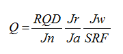 (1)donde Q es el índice de clasificación del macizo, RQD es el índice de fracturación, Jn es el índice de diaclasado, Jr es el índice de rugosidad, Ja es el índice de alteración, Jw es el coeficiente reductor por la presencia de agua y SFR el factor de reducción por esfuerzos (Stress Reduction Factor).