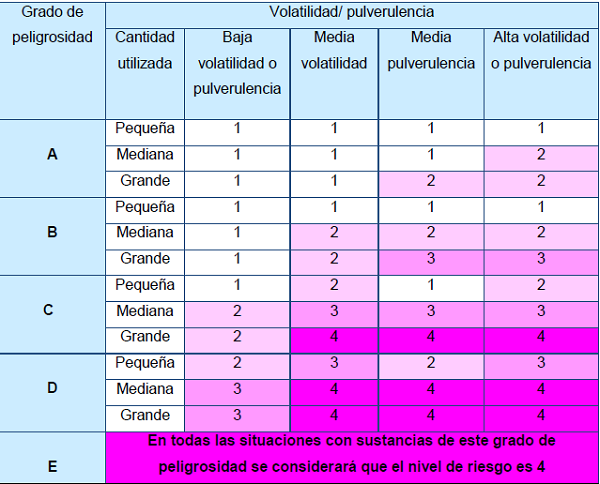 Para los agentes químicos en estado gaseoso se asignará siempre una volatilidad alta, según las bases técnicas del método (Ávila et al., 2013; Montes de Oca, 2016; Gómez, 2012):