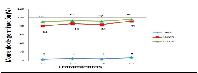 Germinación a los 7, 14 y 21 días después de la siembra (dds).