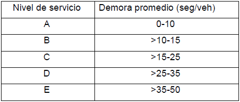 Obtenida la demora promedio por vehículo, se puede determinar el nivel de servicio que le corresponde (Tabla 2).