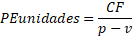 El punto de equilibrio se puede calcular tanto para unidades como para valores en dinero. Algebraicamente el punto de equilibrio para unidades se calcula por la ecuación (1):