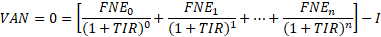 ΣFNEt: Sumatoria de los Flujos netos efectivos actualizados