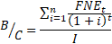 (4)La Razón Beneficio/Costo (B/C) representa cuanto se gana por encima de la inversión efectuada. Igual que el VAN y la TIR, el análisis de beneficio-costo se reduce a una sola cifra, fácil de comunicar, en la cual se basa la decisión. Solo se diferencia del VAN en el resultado, que es expresado en forma relativa. Se halla de la siguiente forma:
