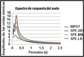 A través de la modelación por el programa Pshake (Sanó & Pugliese, 1991) se obtuvo un factor de amplificación por el orden de 2 (ver Tabla 3); es decir, la amplificación de la señal del suelo puede ser incrementada dos veces por la acción de un sismo energético, lo cual indica que existe un indudable aumento de la intensidad sísmica en esta área como reflejo de la susceptibilidad del suelo, según evidencia del efecto de sitio. También es muy útil el espectro (Figura 3) obtenido, ya que puede ser tenido en cuenta por los proyectistas en el diseño de obras localizadas en el área estudiada.