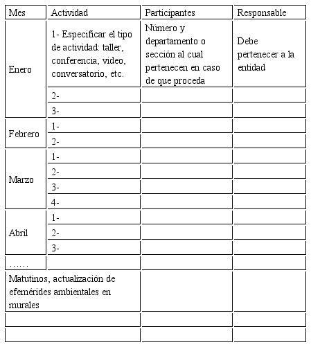 Actividades planificadas, fechas, participantes y responsables de las mismas. (Tabla 1)