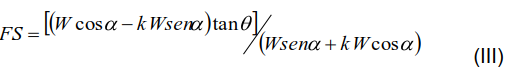 Jibson (2011) plantea la (ecuación III) para realizar el cálculo del factor de seguridad por el método seudoestático.