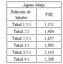 Como se observa en la tabla 1 (a-b), para la variante aguas abajo en las dos primeras relaciones de taludes los factores de seguridad estáticos son menores que 1.5. Por tanto, para estas relaciones los taludes de la presa de colas Yagrumaje no son estables estáticamente. Sin embargo, para el resto de las relaciones el factor de seguridad estático aumenta progresivamente a medida que se incrementa la relación de los taludes aguas abajo de la presa.