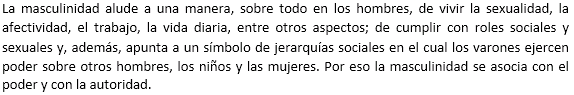 Se destaca en este estudio construcciones subjetivas que refuerzan roles tradicionales y patrones de comportamiento definidos para mujeres y hombres por actores masculinos.