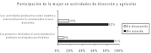 Hay que promover y legitimar el cambio en el comportamiento de los individuos que integran las comunidades investigadas. La figura 2 muestra los resultados alcanzados sobre la participación de la mujer en las actividades de dirección y agrícola.