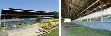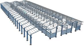 La edificación que se analiza es una nave industrial metálica de tres luces de 18 m cada una, conformada por dos módulos: uno de 9 intercolumnios y otro de 11 m, conectados mediante puente grúa. Dicha estructura cuenta, además, con monitores y aleros que se comportan dinámicamente como apéndices; los muros exteriores, para el cierre de la nave, son del tipo prefabricados (losas cajón).