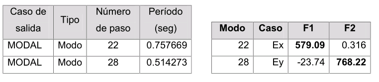 [1]En la edificación que se analiza los períodos fundamentales de vibración, para ambas direcciones, se manifiestan en los modos 22 y 28 (ver tabla 2), ya que son los modos donde se observan las mayores contribuciones al cortante basal (ver tabla 2). Este resultado es consecuencia de la existencia de apéndices (monitor, puente grúa) que manifiestan movimientos propios e independientes del cuerpo principal de la estructura y que definen los valores de período en los primeros modos resultantes del análisis modal espectral. Luego el período fundamental de vibración de la edificación puede asumirse que ocurre en el modo 22.
