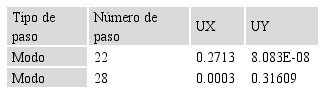 Al analizar las correlaciones entre los modos 22 y 28 no se observa correlación entre los mismos, dado por el hecho de que a valores significativos de masas en una dirección les corresponden pequeños valores de masas en la otra dirección. (tabla 4)